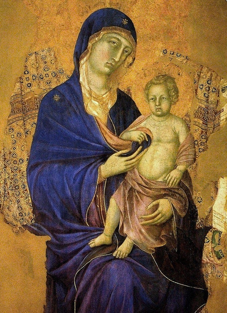 Also called the Madonna of Santa Maria Novella, it is a large panel painting showing the Virgin and Child enthroned with angels. It exemplifies Duccio's early style, with a blend of Byzantine and Gothic influences.